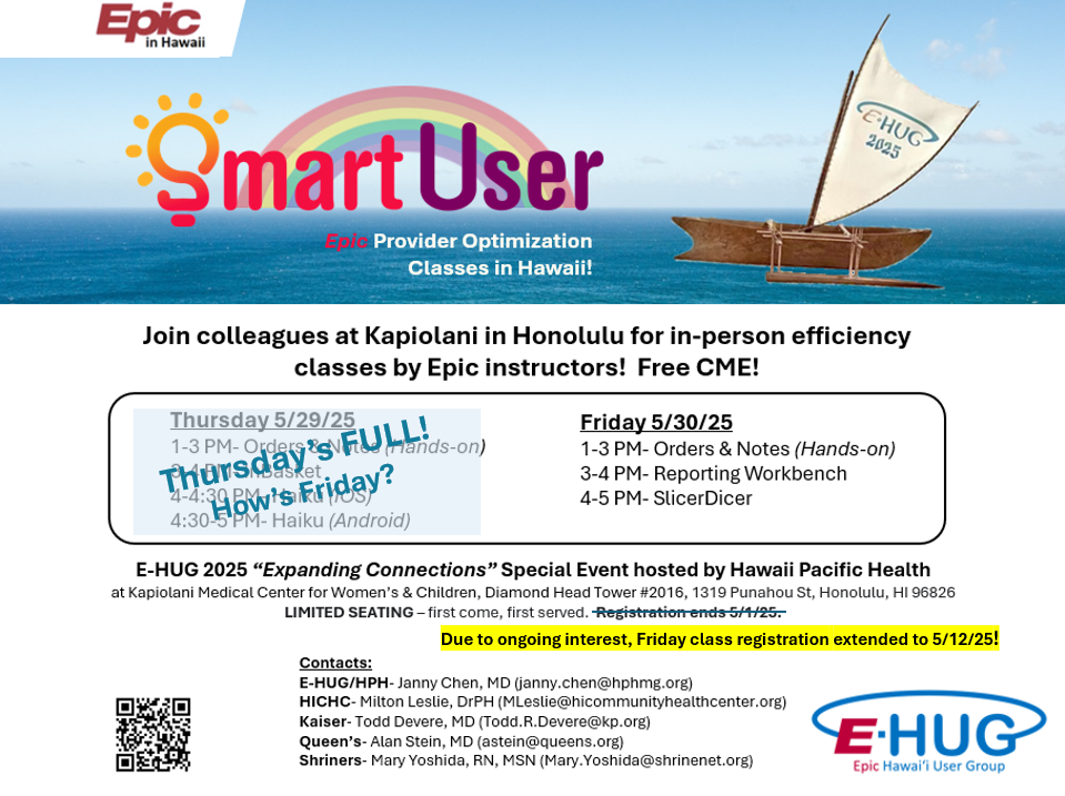 MAHALO for a wonderful E-HUG 2025! See you at E-HUG 2026 at Queen's Monday 6/29/26 morning! SmartUser classes 6/29/26 & 6/30/26 afternoons! SAVE THE DATES!!!